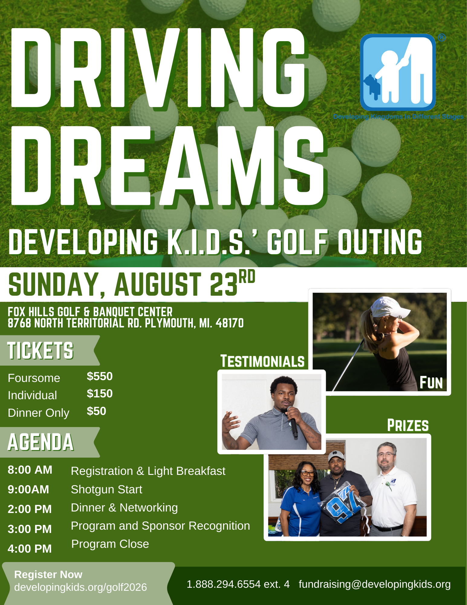 Partner with us for the Driving Dreams: Developing K.I.D.S.’ Golf Outing and showcase your commitment to empowering youth through education, mentorship, and opportunity. As a sponsor, your brand will gain high-visibility exposure to community leaders, professionals, and philanthropists, all while directly supporting programs that drive real change.