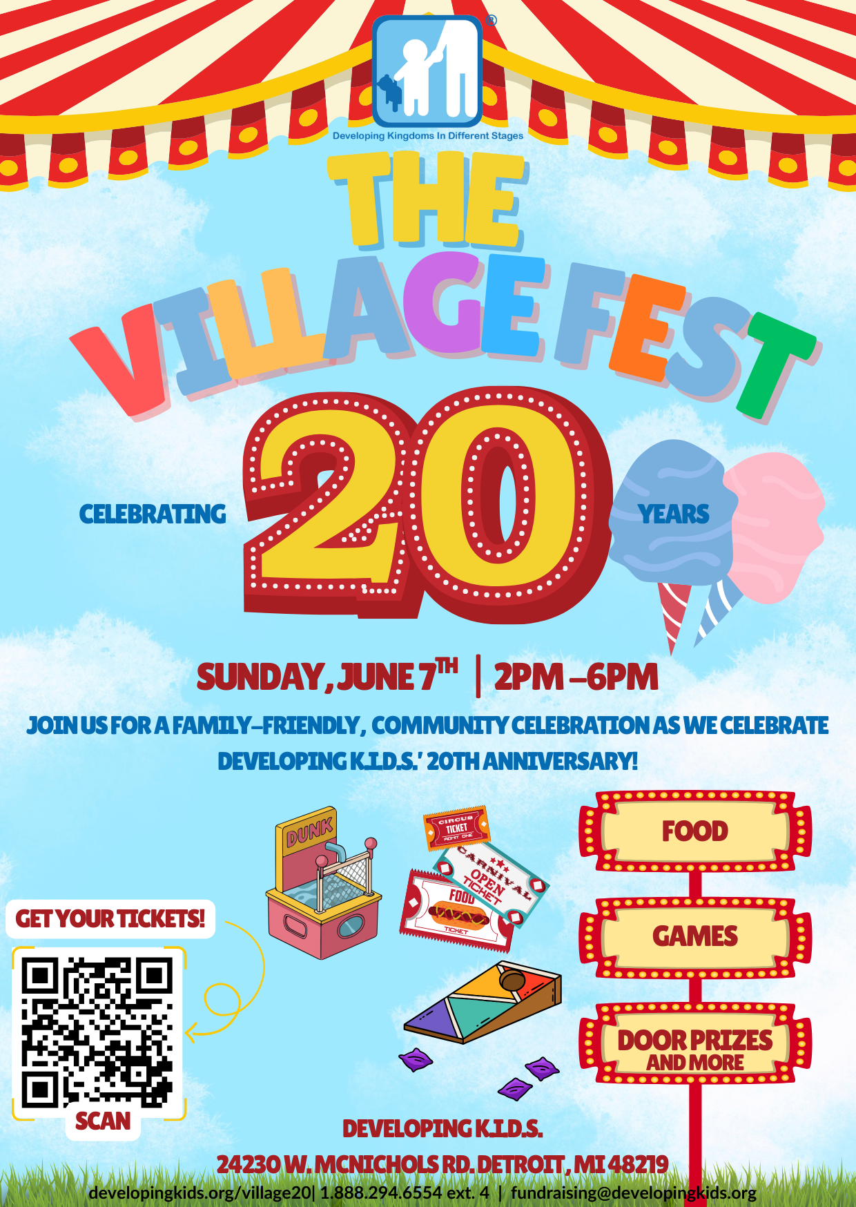 Registered Developing K.I.D.S. families receive 20% off in honor of our 20-year milestone. To redeem your discount, tickets must be purchased on-site before the event on June 7 (while supplies last).